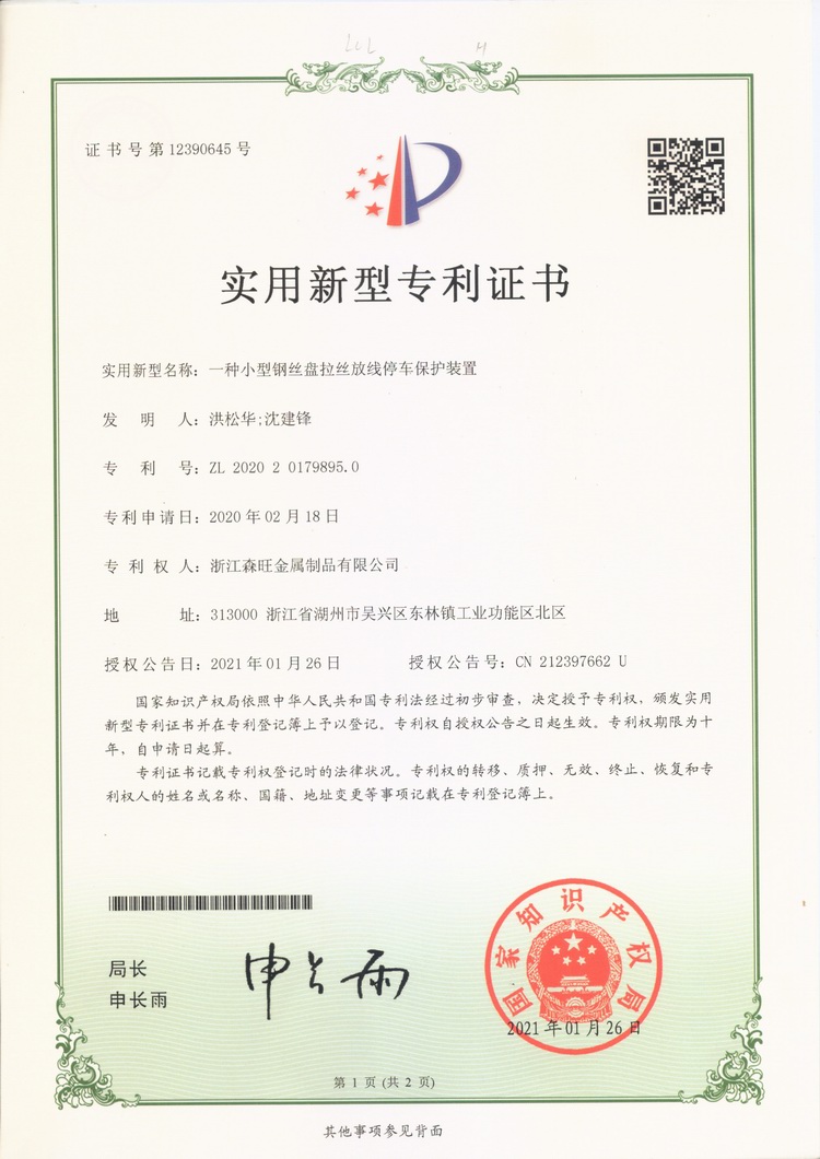 浙江森旺金屬制品有限公司成立于2012年,坐落湖州市吳興區(qū)東林鎮(zhèn)工業(yè)功能區(qū)。公司專業(yè)從事各類鍍鋅鋼絲、鋼絞線等產品的開發(fā)及生產。目前產品已廣泛應用于各類通信光電纜,電力輸送,電氣化鐵路工程,各類堤壩防護及農業(yè)溫室等工程領域。公司秉承“追求卓越品質,創(chuàng)建卓著信譽”的經營理念,始終堅持專業(yè)化、規(guī)模化的經營模式。
