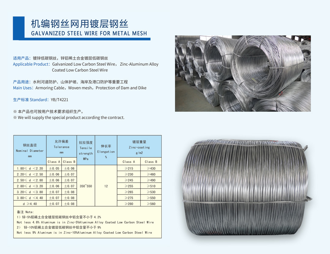 浙江森旺金屬制品有限公司成立于2012年,坐落湖州市吳興區(qū)東林鎮(zhèn)工業(yè)功能區(qū)。公司專業(yè)從事各類鍍鋅鋼絲、鋼絞線等產品的開發(fā)及生產。目前產品已廣泛應用于各類通信光電纜,電力輸送,電氣化鐵路工程,各類堤壩防護及農業(yè)溫室等工程領域。公司秉承“追求卓越品質,創(chuàng)建卓著信譽”的經營理念,始終堅持專業(yè)化、規(guī)模化的經營模式。